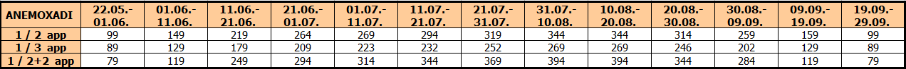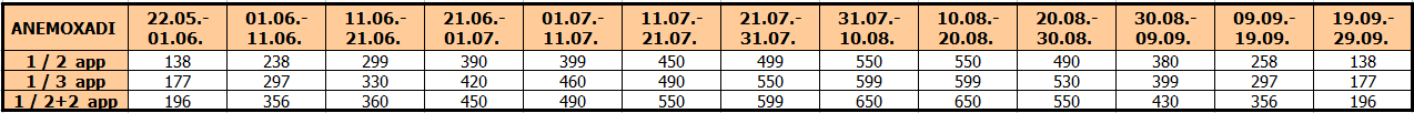 – Smeštaj na bazi 10 noćenja u dvokrevetnim, trokrevetnim i četvorokrevetnim apartmanima Anemohadi