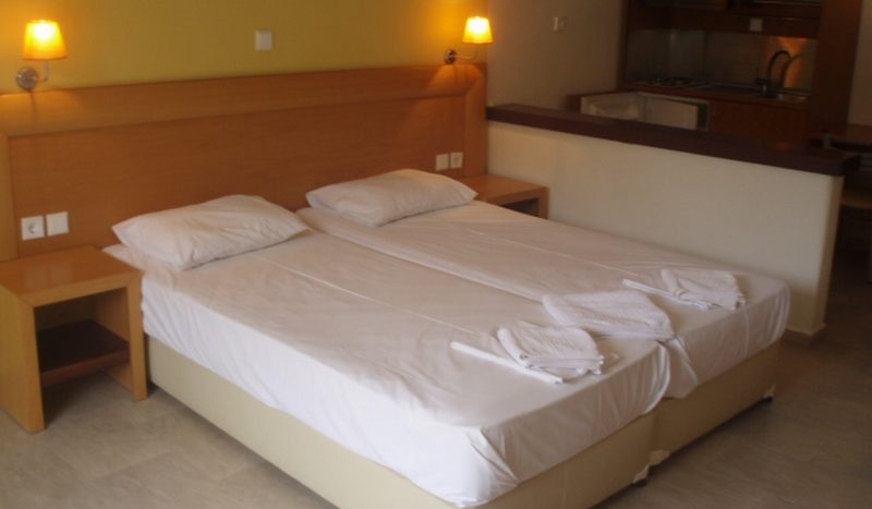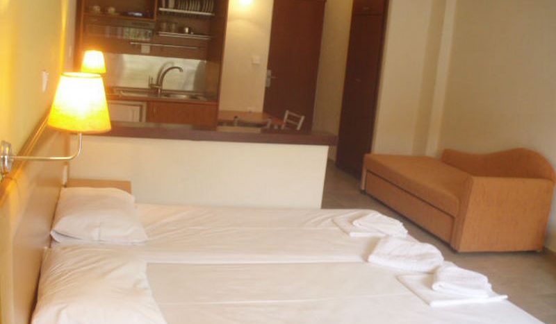 SADRŽAJ 1/3 i 1/4 APP: Soba za spavanje sa dva standardna spojena ležaja, jedna sofa u kuhinjskom delu (a kod app 1/4 tu je sofa na razvlačenje), kuhinja opremljena: frižider, rešo na struju, aspirator, posuđe i pribor, mali sto za ručavanje , kupatilo, ormar, toaletni sto sa ogledalom, noćni stočić, SAT/TV , klima, terasa sa garniturom za sedenje.