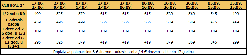 -deca od 2 – 12 godina u PRATNJI DVE PUNOPLATEŽNE OSOBE plaćaju iznos naznačen u tabeli