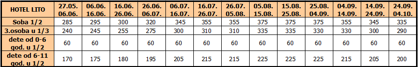 ZA PUTNIKE IZ NIŠA, LESKOVCA, VRANJA CENE IZ TABELE UMANJUJU SE 5 EUR PO OSOBI.