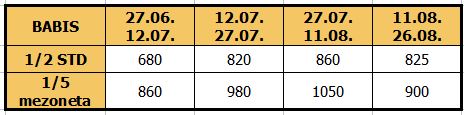 Cene su izražene u evrima po osobi za 10 noćenja sa uračunatim autobuskim prevozom