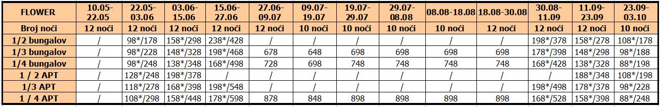 – Doplata za 1/1 sobu iznosi 50% od ukupne cene paket aramana (smena sa *).