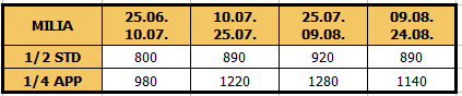 Cene su izražene u evrima za najam apartmana po osobi na 10 noćenja