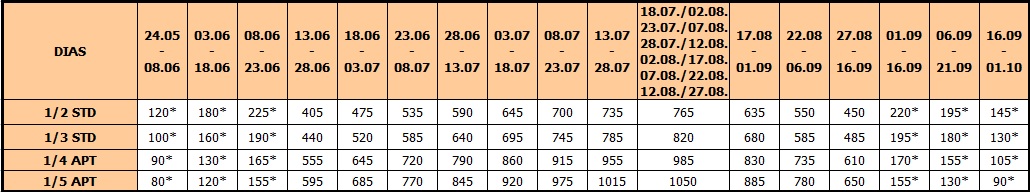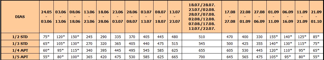 U smenama sa zvezdicom *, u slučaju sopstvenog prevoza cena paket aranžmana se umanjuje za 25€ po osobi.