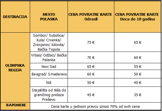 Cene su izražene po osobi sa uključenim autobuskim prevozom