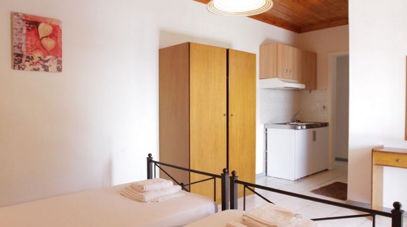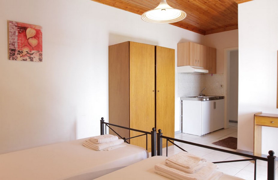 Dvokrevetni studiji su prostrani i u svom sastavu imaju ili dva standard singl ležaja ili jedan Francuski ležaj. Poseduju dobro opremljene kuhinje i nova kupatila. Kuhinje su u potpunosti opremljene posuđem za dve osobe. Najveća prednost su prelepe terase od kojih neke imaju pogled na more. Studiji poseduju noćni stočić i orman. Studiji nemaju TV.