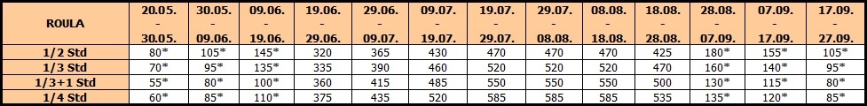 U smenama sa zvezdicom *, u slučaju sopstvenog prevoza cena paket aranžmana se umanjuje za 25€ po osobi.